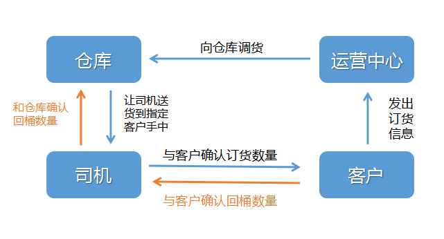 订货货送水行业解决方案 本站 • 发表于:2018-02-03 订货货适用于订水行业的桶装水生产商或下级批发商。 传统订货送水的运作模式中,是由客户向经销商/批发商订货后,由经销商向仓库发出指令,经由送货司机运送到客户手上。司机需要承担与客户仓库双向确认的职责,步骤繁琐,效率低下。 使用订货货,帮您把所有的沟通购买流程集成于一套系统,管理员司机只需动动手指在线操作,即可完成所有工作。智能管理出桶回桶,解决困扰订水行业多年的难题。